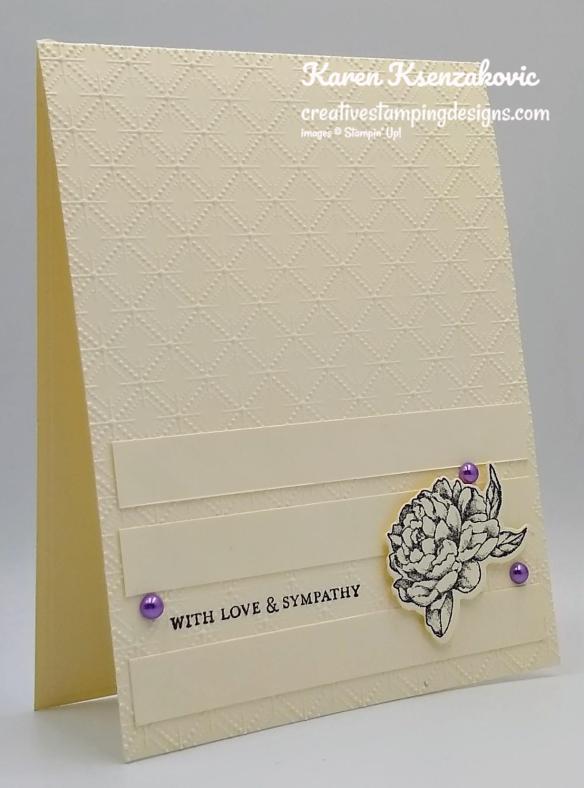I have a clean and simple card for you today using the Stampin’ Up! Prized Peony Bundle. I thought after yesterday’s very involved card I’d do something simple. Here’s my card for today.