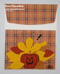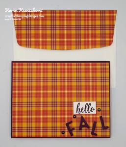 To finish my card, I decorated a Basic White Medium Envelope. I stamped the monkey image from the Catch You Later stamp set on the envelope front in Tuxedo Black Ink. I colored the image the same as I did for the card using my Stampin’ Blends Markers. I adhered a panel of the 2021-2023 In-Color DSP to the envelope flap.