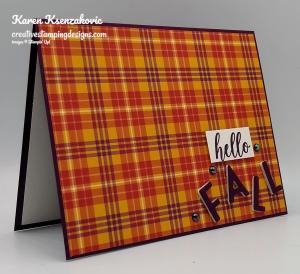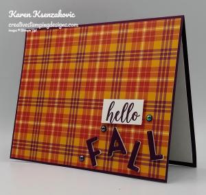 From a panel of Evening Evergreen cardstock that I had adhered to a Foam Adhesive Sheet, I cut the letters and number using the Playful Alphabet Dies. I adhered the letters down the side of the card front.