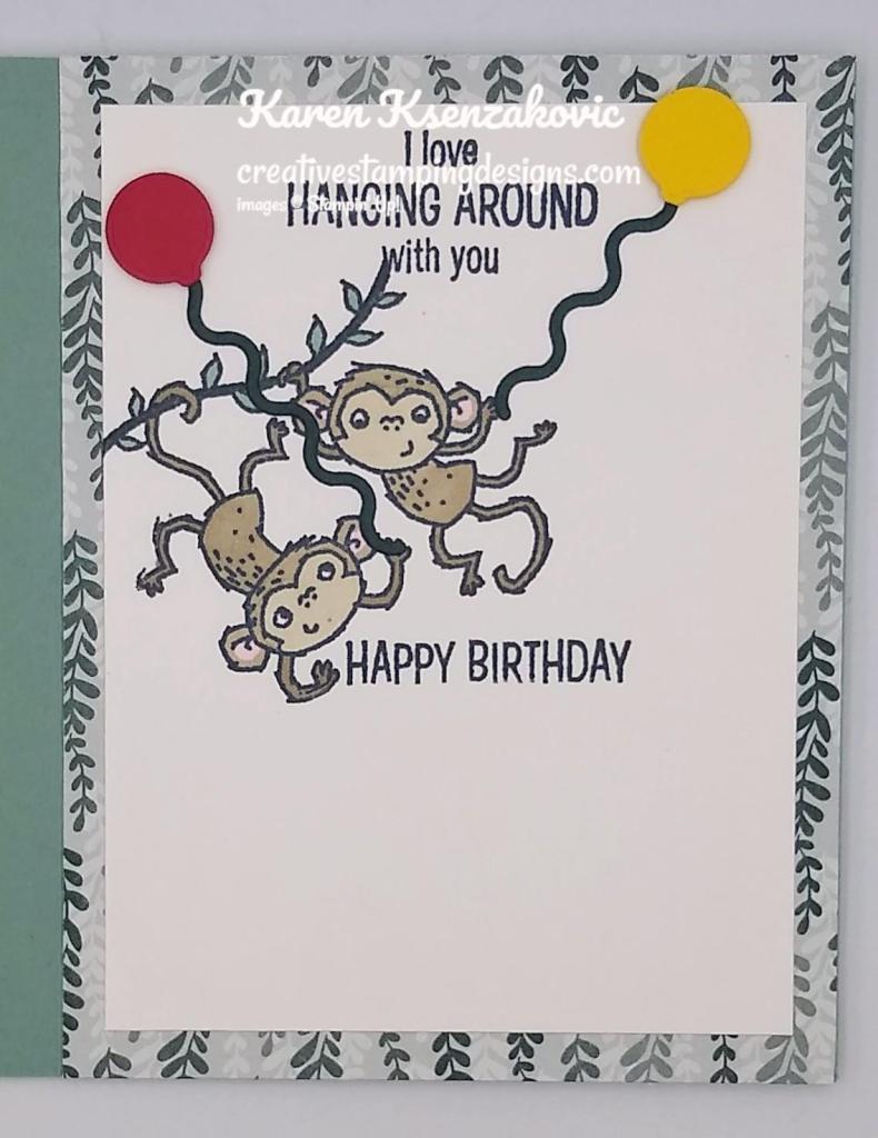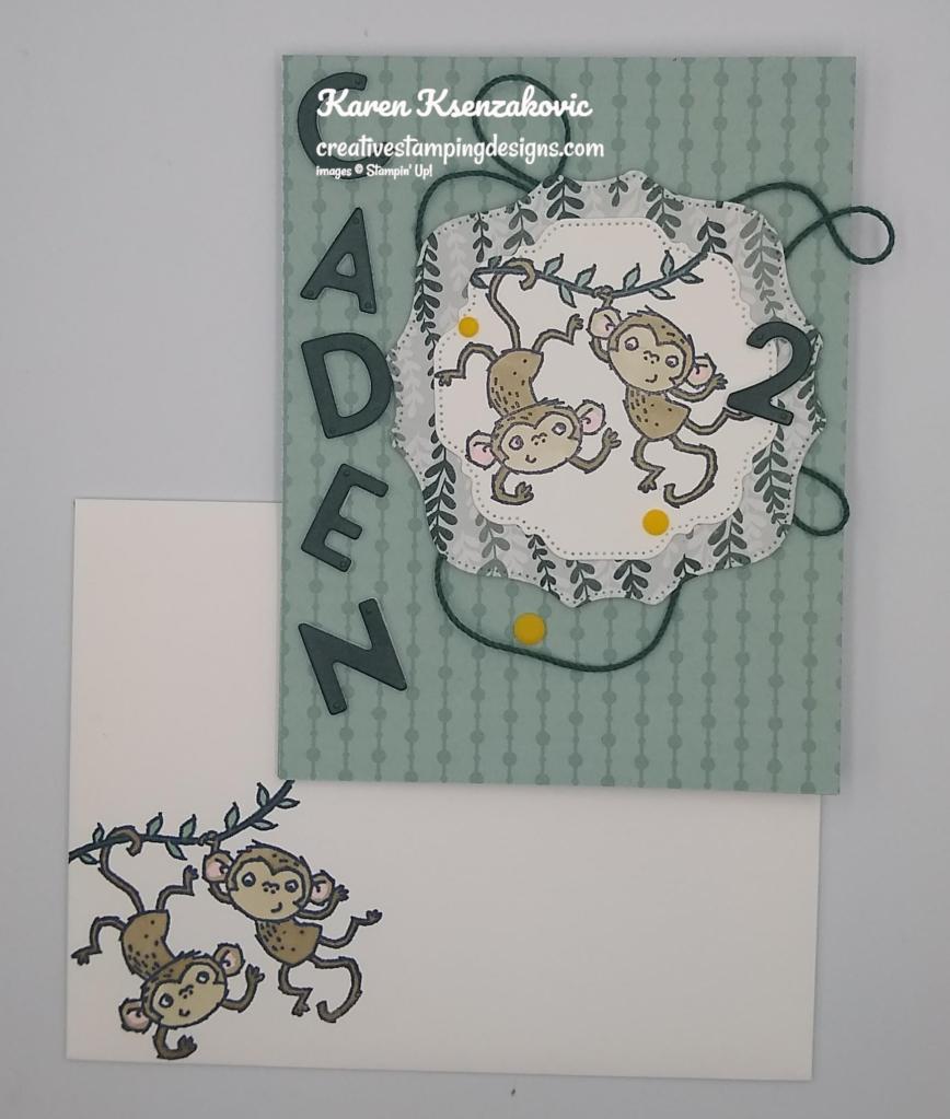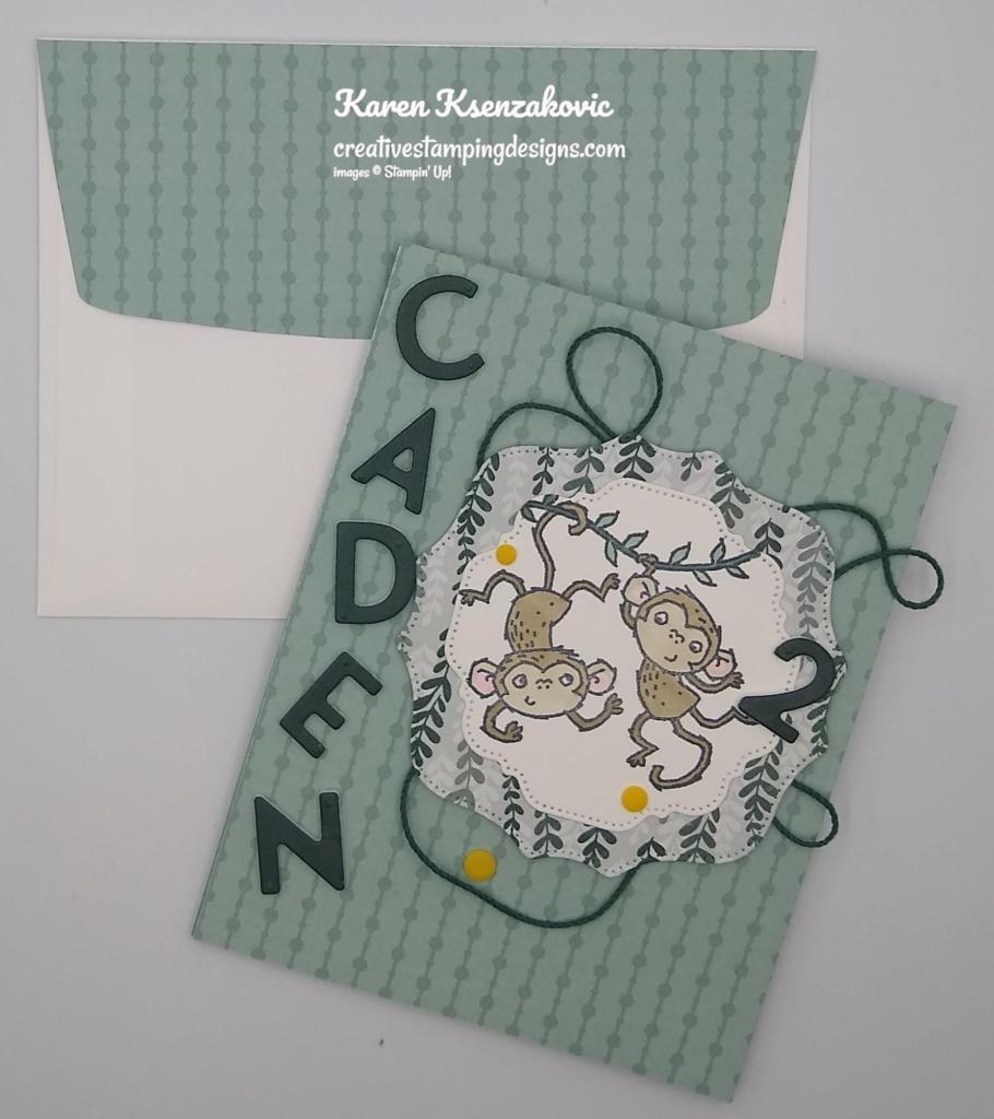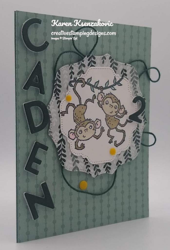 Today’s card is one that one of my cashiers asked me to make for her. Her grandson is turning 2 and loves monkeys, so I knew exactly what I wanted to make for her. Here’s my card for today.