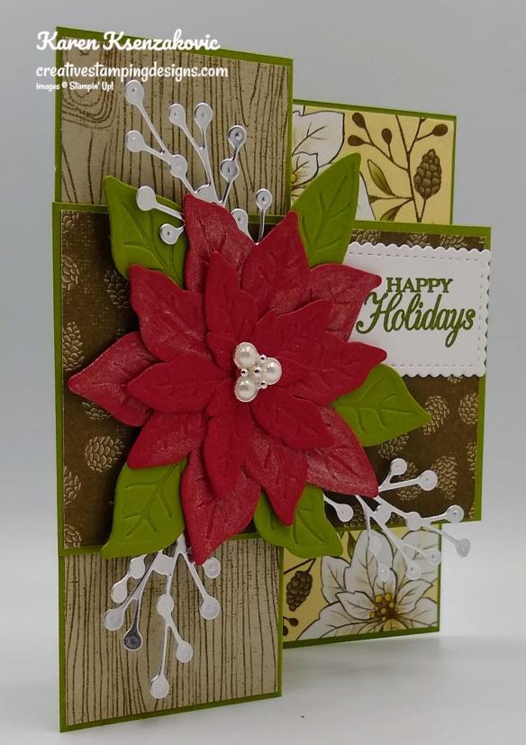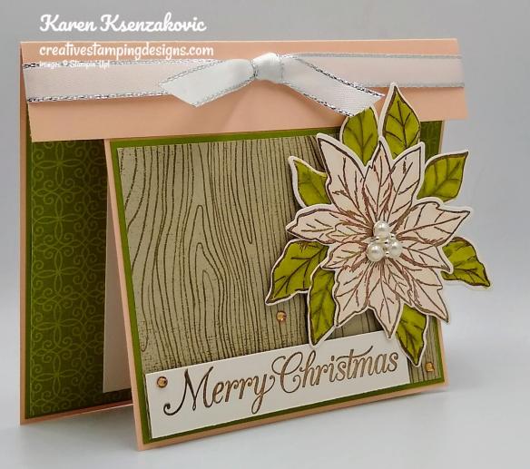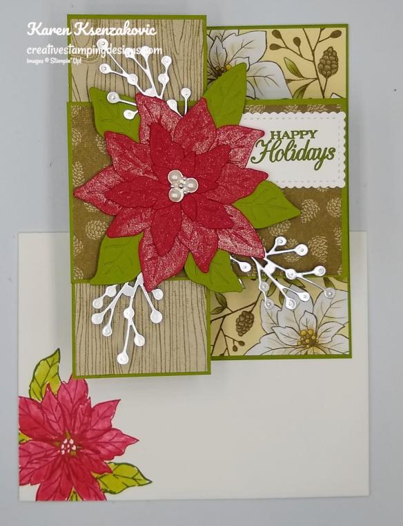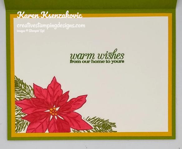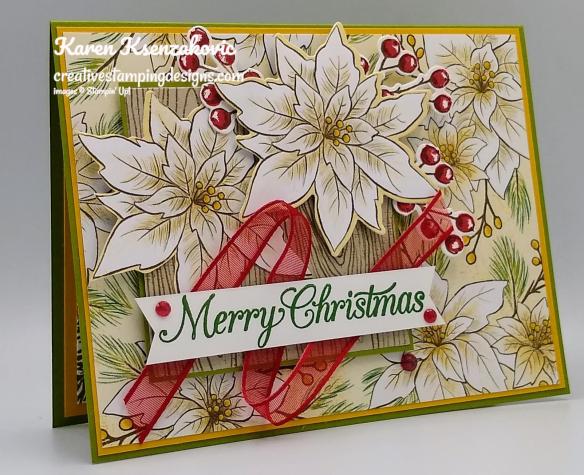 I used the Stampin’ Up! Poinsettia Petals Photopolymer Stamp Set for my Mixed Media card. I was inspired by the Poinsettias in the photo along with the colors.