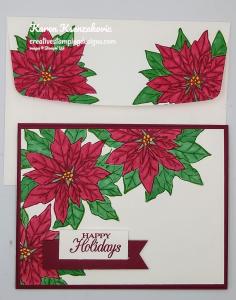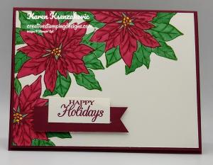 I used the Stampin’ Up! Poinsettia Petals Photopolymer Stamp Set for my Mixed Media card. I was inspired by the Poinsettias in the photo along with the colors.
