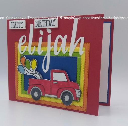 For today’s card I needed to make another masculine card using the Stampin’ Up! Ride With Me Photopolymer Stamp Set. I was asked to make another masculine birthday card and the guy the card is for has always wanted a black truck. Here’s my card.