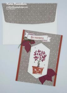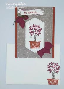 - Cherry Cobbler Cardstock 2″ X 2″ (leaf), 4 1/8″ X 5 3/8″ (inner liner mat)