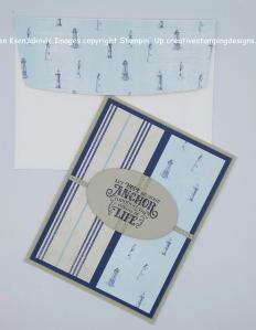 I used the Stampin’ Up! Friends Are Like Seashells Photopolymer Stamp Set and the Stampin’ Up! Sailing Home Cling Stamp Set. Nothing says summer to me like the beach.
