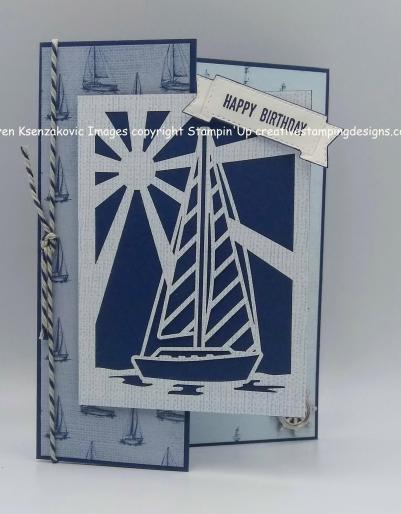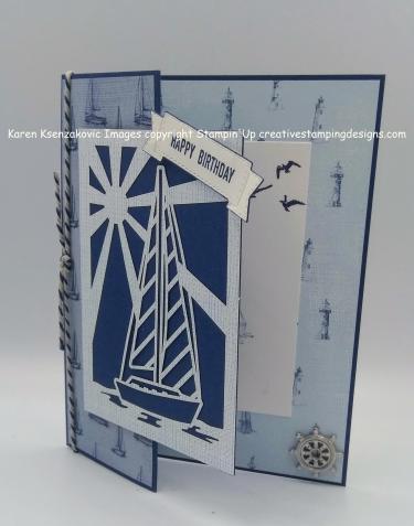 I have a masculine Z-Fold card for you today using one of my absolute favorite suites, Come Sail Away. Here’s my card.