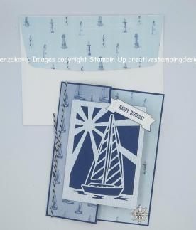 Thank you for stopping by my blog today. I hope you liked my card and will give it a try. Z-Fold cards are one of the easiest Fun Fold card and you can do so many different things with it. Stampin’ Up has made it very easy to order entire suites now. I used everything that comes in the Come Sail Away Suite except for the 3D Embossing Folder. One number now can order everything in the suite. Happy Stamping!!