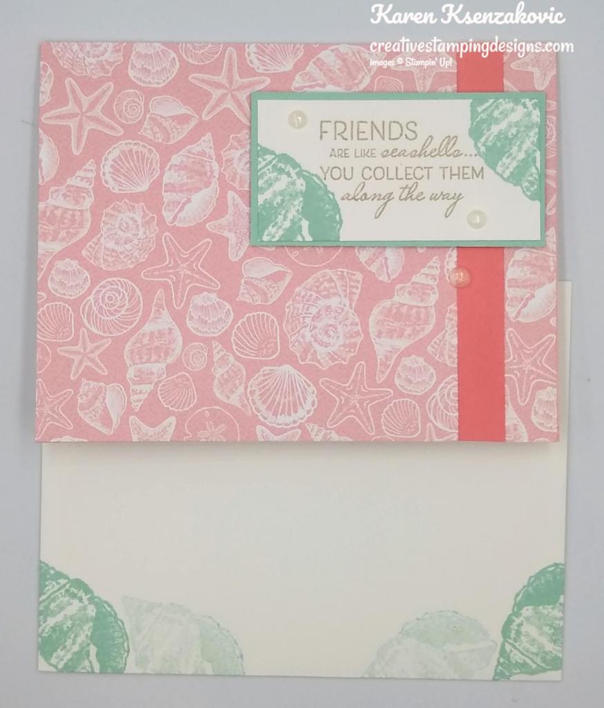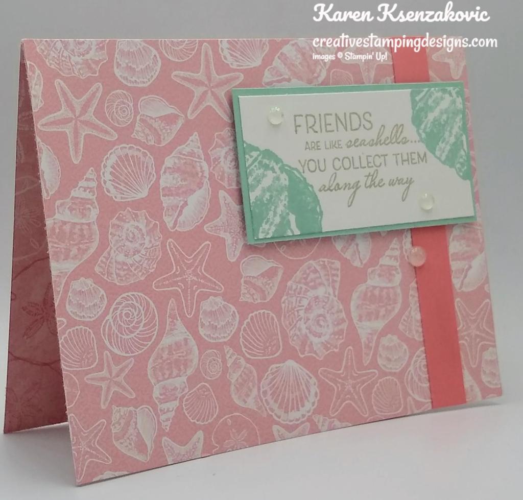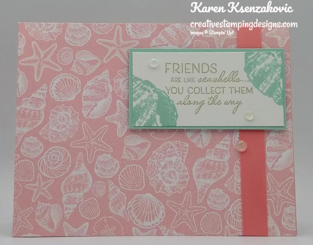 I used the Stampin’ Up! Friends Are Like Seashells Bundle and the Stampin’ Up! Sailing Home Bundle.