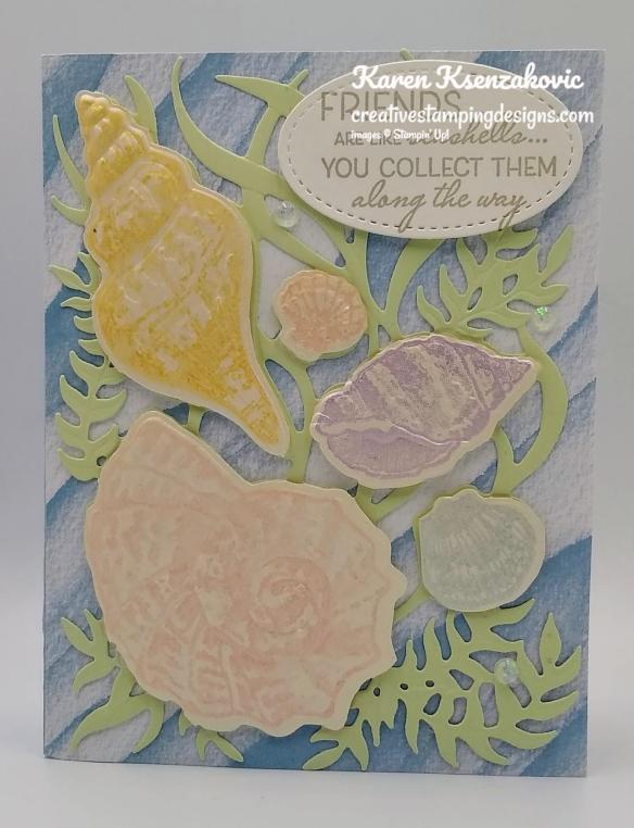 I used the Stampin’ Up! Friends Are Like Seashells Photopolymer Stamp Set for my clean and layered card today.