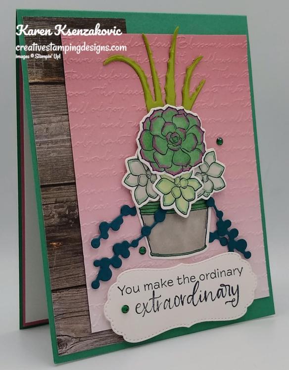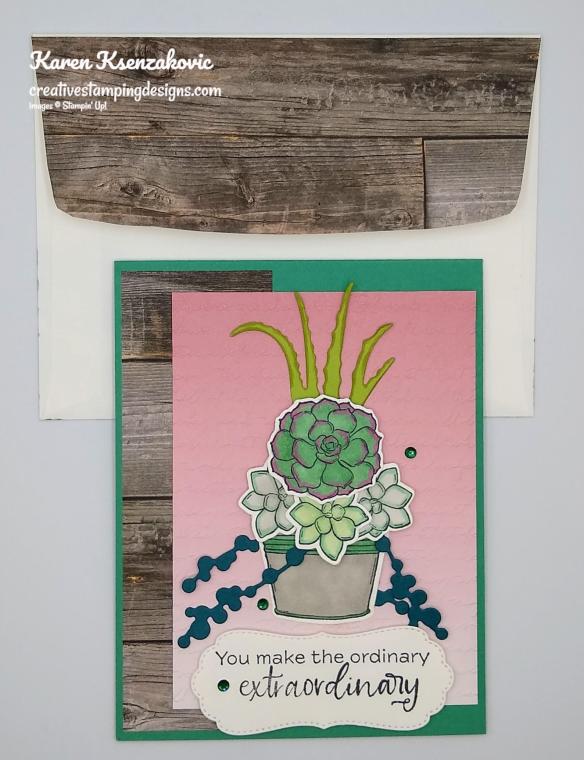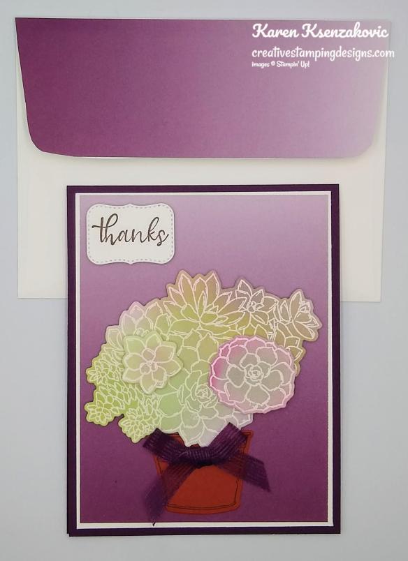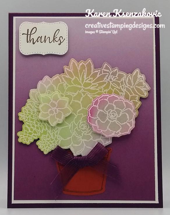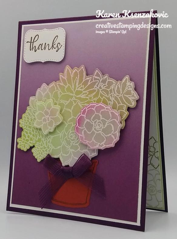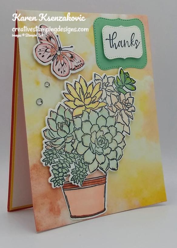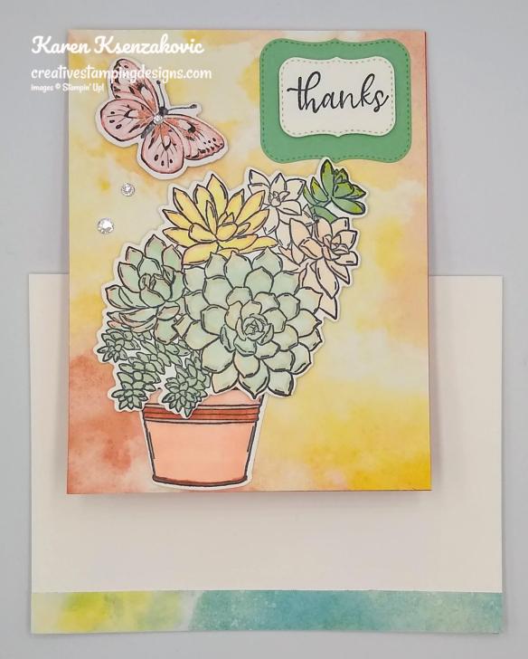 I used the Stampin’ Up! Simply Succulents Bundle for my fun fold card today along with the Bloom Where You’re Planted Designer Series Paper.