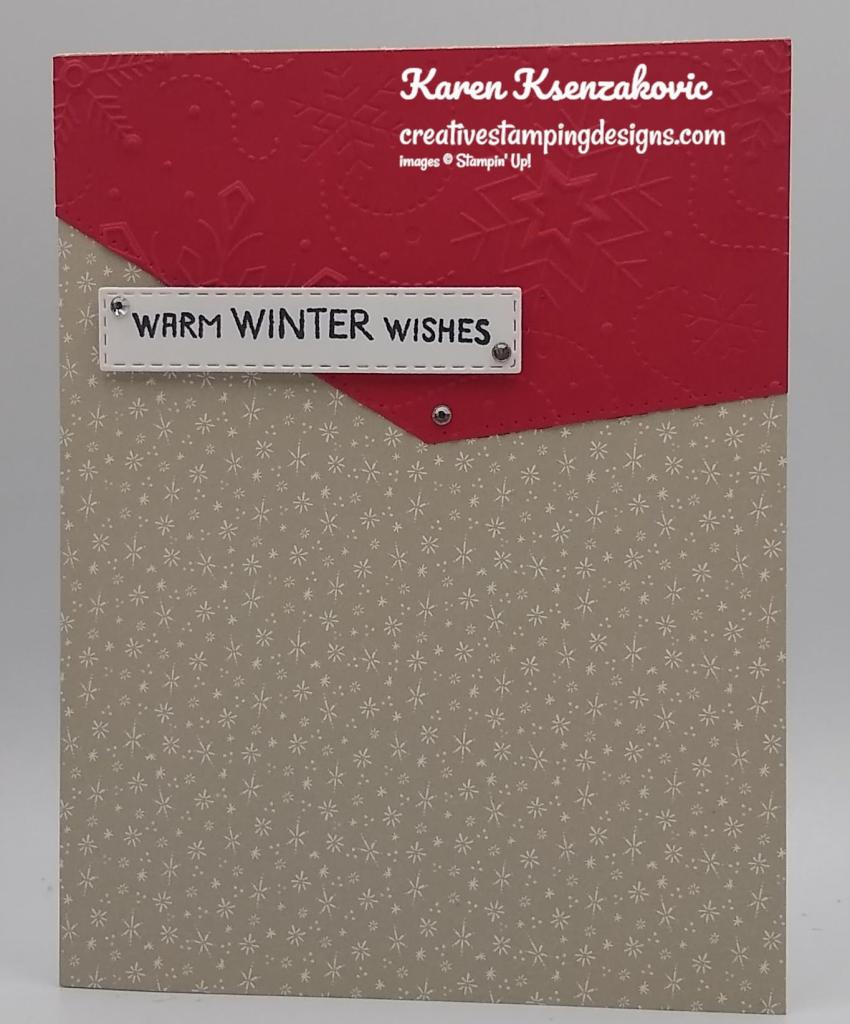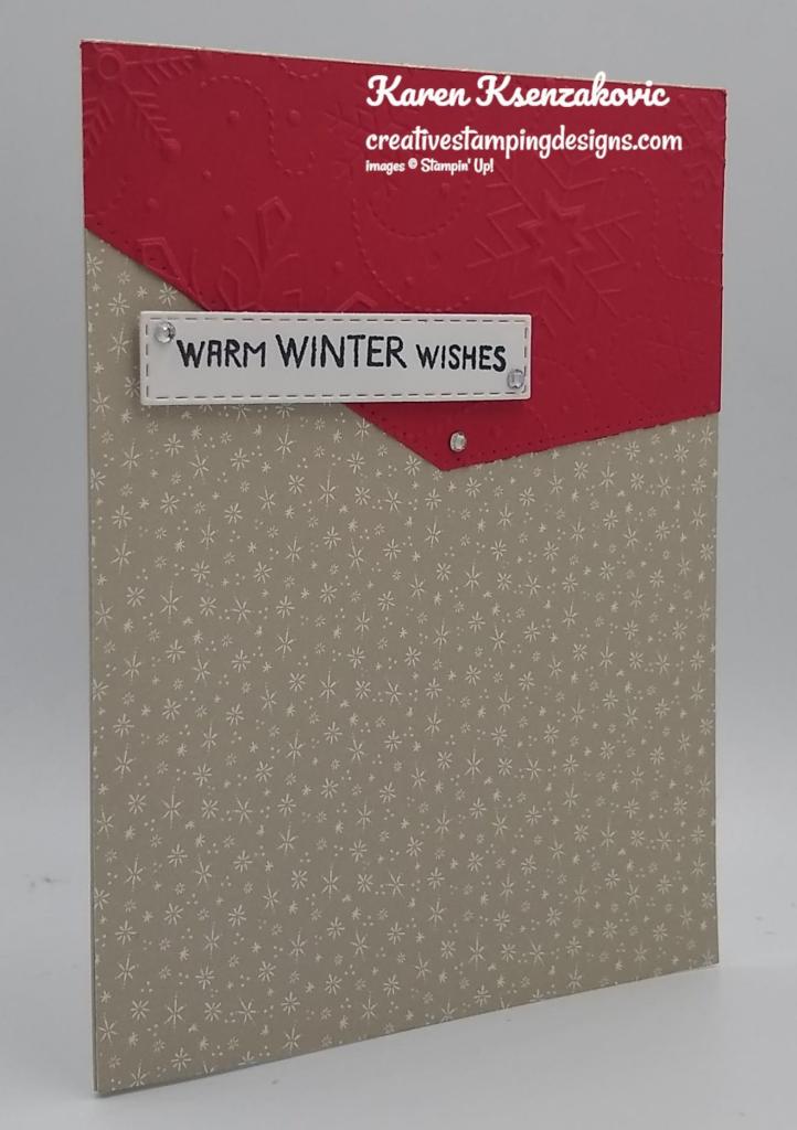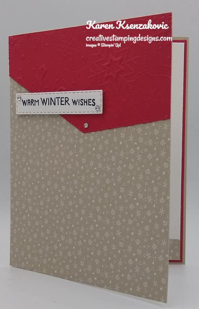 So I thought I was done making all my Christmas cards, then my husband said “I need 2 cards for the bosses at work”, UGH! So here’s what I came up with for 1 of them. I’m really hoping he can pick one of my already made cards for the other one.