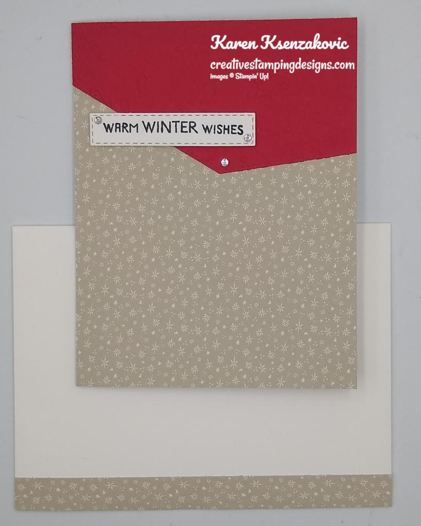I started by adhering a panel of Tidings of Christmas DSP to the front panel of the Soft Succulent card base.