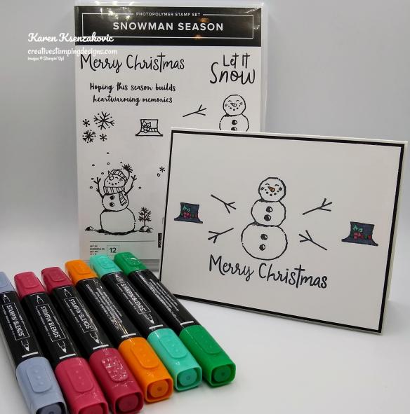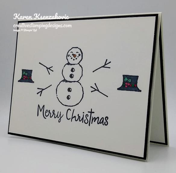 I used the Stampin’ Up Snowman Season Photopolymer Stamp Set from the 2020-2021 Annual Catalog and the Stampin’ Up! Approaching Perfection Cling Stamp Set from the Sale-A-Bration Catalog coming January 5, 2021. I played along with Cardz 4 Guyz Challenge #260. The theme is ‘Snowman/Men’.
