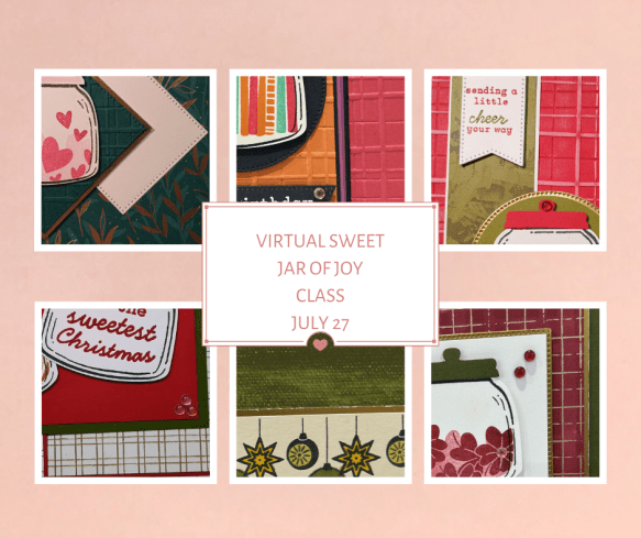 Tara Carpenter and I are teaming up to offer a fun online class using Stampin’ Up! Sweet Jar Bundle and the new Stampin’ Up! Jar of Joy set. We will be creating 6 different cards during the class including 2 fun folds. 3 of the cards will be Christmas Cards and 3 will be Birthday Cards. Sign Up now by Clicking Here to reserve your spot.