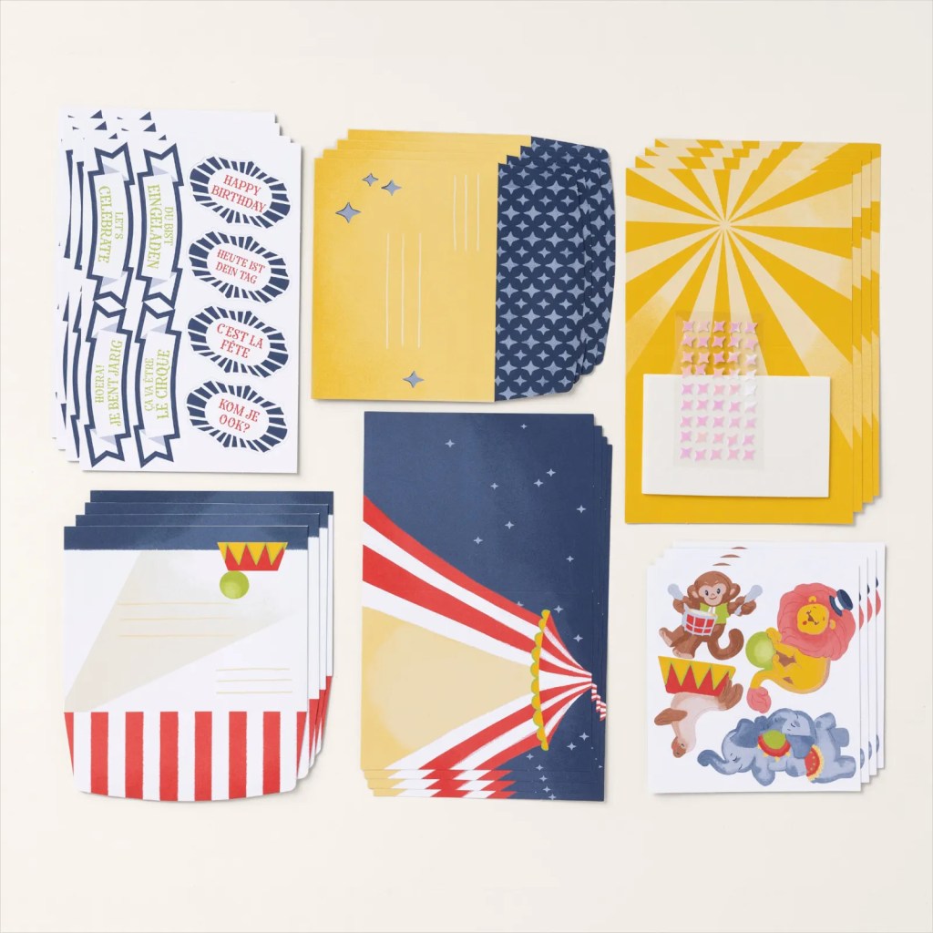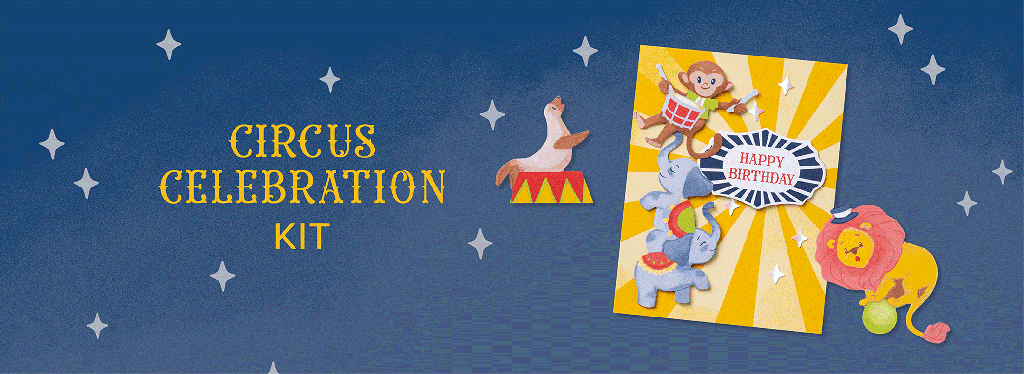 Make magical birthday cards with the Circus Celebrations Kit! This DIY card making kit has all the pieces you need to create four birthday cards in two circus-themed designs with adorable animals doing tricks for your audience. The playful designs are perfect to celebrate birthdays for all ages. This is a stamp-free kit making it even easier to craft than most so it’s great for beginners!