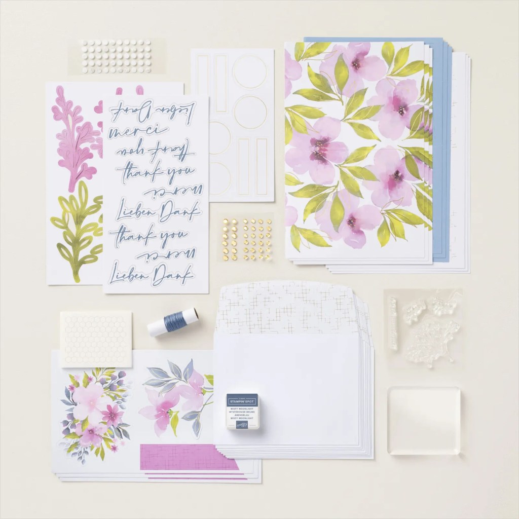 Make your gratitude gorgeous with the Garden of Thanks Kit! This DIY card making kit is centered around saying thanks in the most beautiful way. You can create three thank you cards each in three purple watercolor floral designs. Whether you want to convey your sincere thanks or love purple and blue flower gardens, this card kit is for you! Available in French.