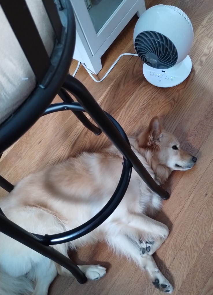 Good Friday morning stamping friends and welcome to my Fun Fold Friday. Did everyone have a nice 4th? It was a very relaxing day here at our house. My niece came over in the morning with her dog and we went out walking for a few miles with the dogs. By the time we got home they were both hot and exhausted. Here’s a picture of what Coraline did after her walk. Smart pup, laid down right in front of the fan.
