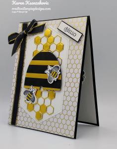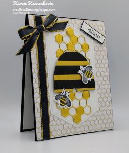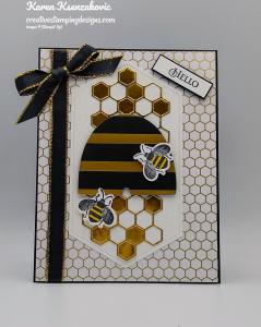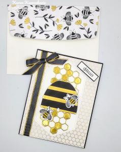 This card I used Bumblebee and Old Olive cardstock and just did a simple layering. I stamped the sentiment from Stampin’ Up! Strong & Beautiful Cling Stamp Set in Old Olive Ink, cut it our with the Stitched Nested Labels Dies and adhered it to the card front. Stamped the flower from the Stampin’ Up! Art Gallery Photopolymer Stamp Set using my Bumblebee and Old Olive Stampin’ Write Markers and cut image out with Floral Gallery Dies.