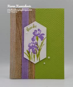 This card I used Flirty Flamingo and Mossy Meadow cardstock and just did a simple layering. I stamped the sentiment from Stampin’ Up! Art Gallery Photopolymer Stamp Set in Mossy Meadow Ink, cut it our with the Messages Dies. I cut an oval mat using the Layering Ovals Dies, adhered the sentiment and adhered it to the card front.
