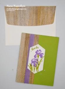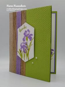 I used 1 sheet of the Fine Art Floral Designer Series Paper and 1 sheet of the Golden Garden Designer Series Acetate to make all 6 cards. I placed the acetate over the DSP, tacked it in a couple places using Glue Dots and cut 4″ X 5 1/4″ panels.