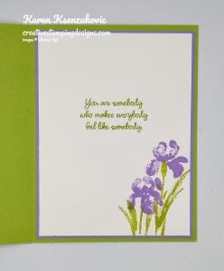 This card I used Blushing Bride and Merry Merlot cardstock and just did a simple layering. I stamped the sentiment from Stampin’ Up! Strong & Beautiful Cling Stamp Set in Merry Merlot Ink, cut it our with the Stitched Shapes Dies. I cut a scalloped mat from Merry Merlot cardstock using the Layering Ovals Dies, adhered the sentiment and adhered it to the card front.