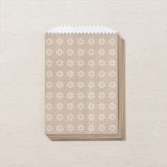 To complete my card, I decorated a Basic White Medium Envelope. I stamped the snowflake images from the Joyful Flurry stamp set in Pacific Point Ink on the envelope front. Some stamped off once and some twice. I adhered a panel of Storybook Gnomes DSP to the envelope flap.