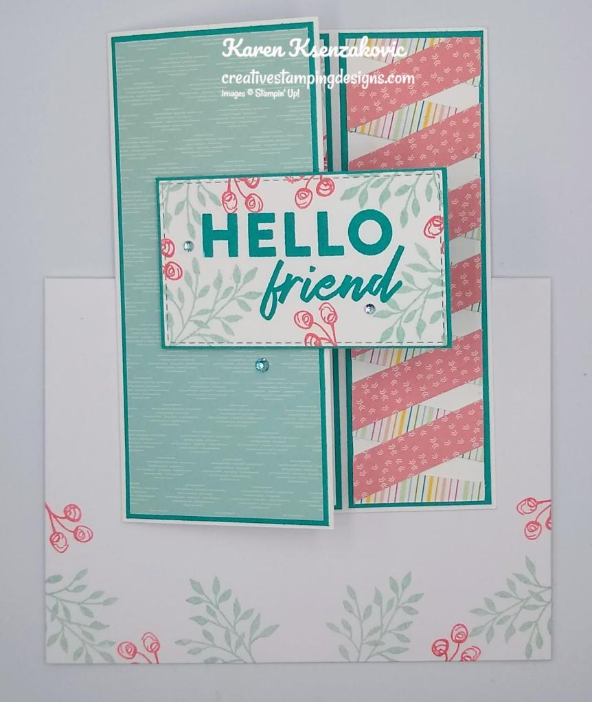 Good Friday morning my stamping friends, welcome to my Fun Fold Friday. How was everyone’s week? Are you ready for the weekend? I’ll be working all day tomorrow, but I have off on Sunday, YAY!!! The cold weather is back here. We had that little tease of spring again on Wednesday with the temperature at 70, now we’re back down to the 20’s and 30’s.