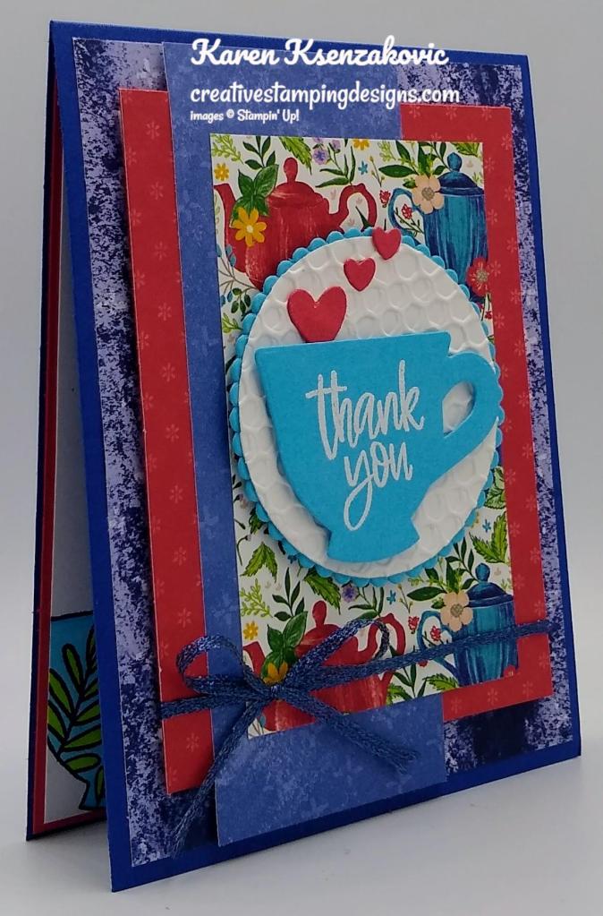 I used the Stampin’ Up! Quiet Meadow Cling Stamp Set along with the Tea Boutique 6 X 6 Designer Series Paper for my card today.
