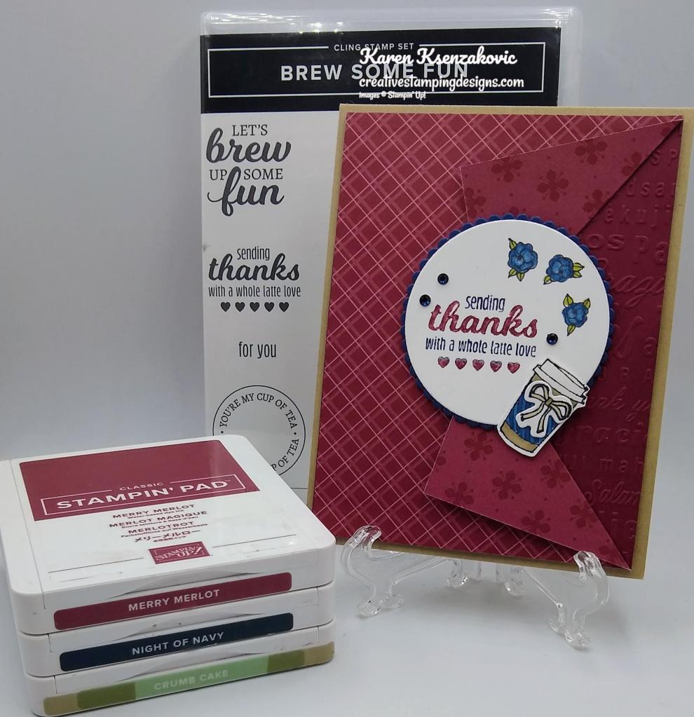 I used the Stampin’ Up! Brew Some Fun Cling Stamp Set along with the Neutrals 6 X 6 Designer Series Paper for my simple fun fold card today.