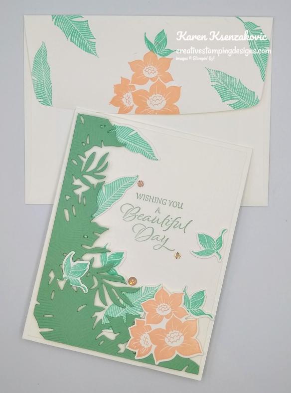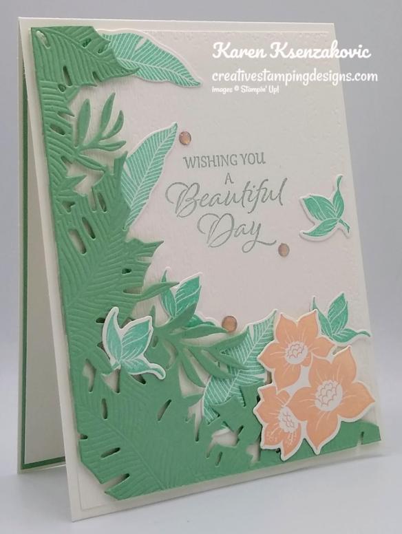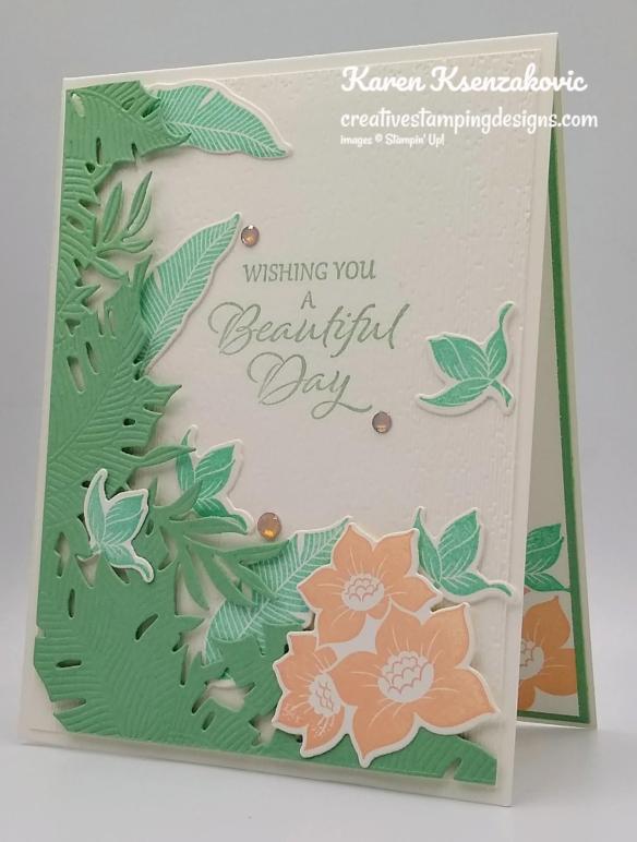 My card used the Stampin’ Up! Tranquil Thoughts Bundle. This bundle will be retiring soon, so if it’s one that you like now’s the time to grab it.