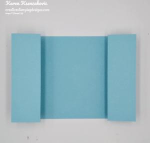 - Seaside Spray Cardstock 8 1/2″ X 5 1/2″ (card base scored and folded at 4 1/4″), 4 1/4″ X 5 1/2″ (card front)