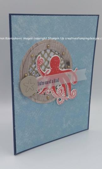For today’s card I chose the Stampin’ Up Seaside Notions Cling Stamp Set to use. Nothing says summer to me more than seashells and waves. Here’s my card.