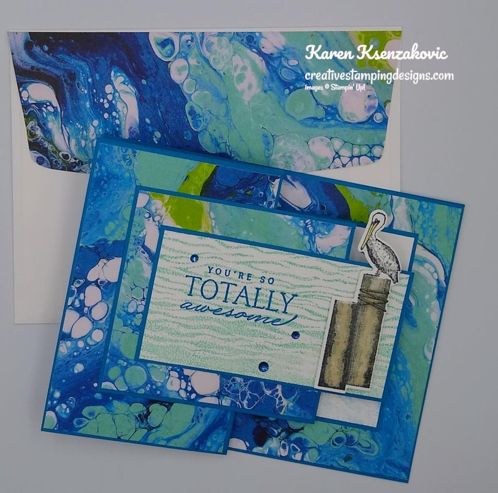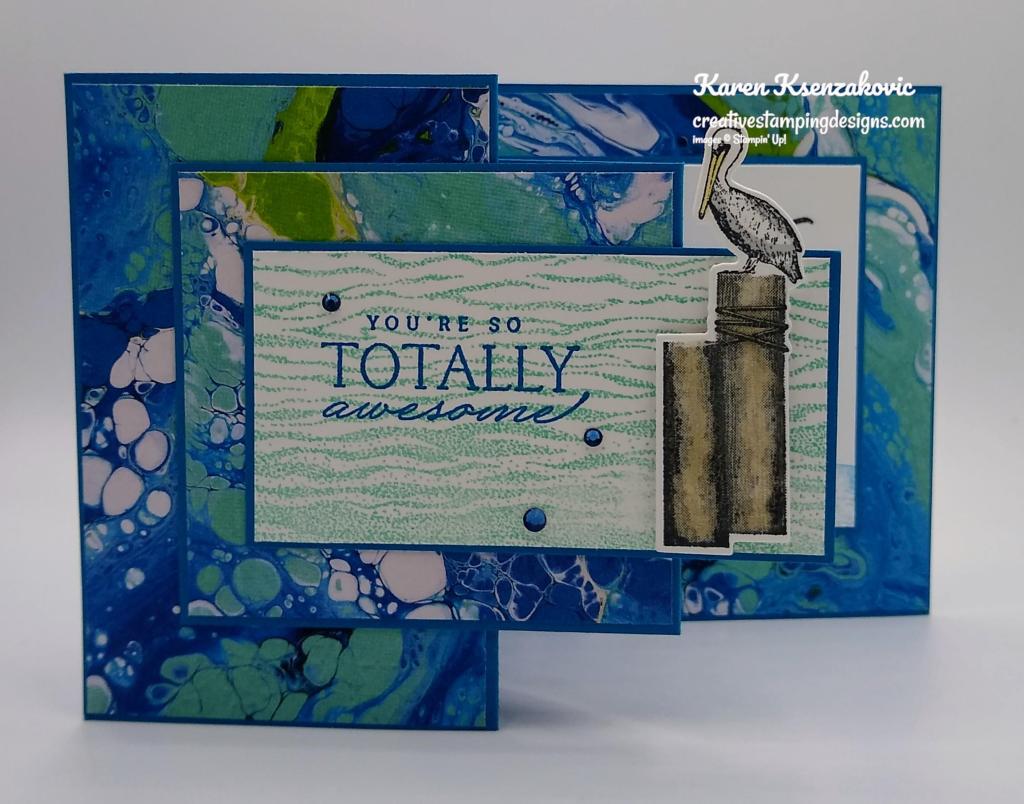I have a fun card today featuring Sale-a-bration Designer Series Paper. You can earn this paper FREE with a qualifying order of $50. If you’d like to see a quick video on how I made this card, Click Here to go to my Instagram Reels. Here’s my card for today.