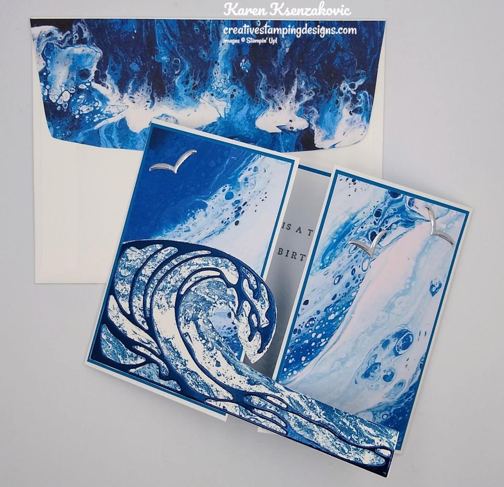 - Most Adored Designer Series Paper 2 – 1 7/8″ x 3 5/8″ (card front panels), 2 1/4″ X 6″ (envelope flap)