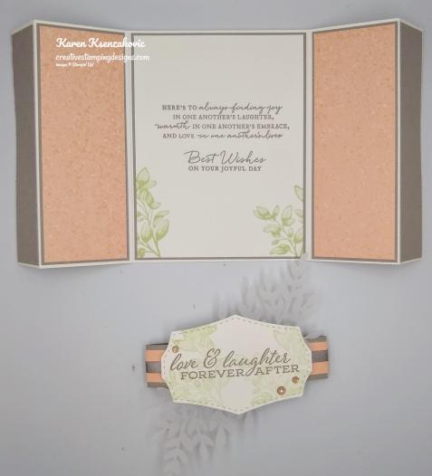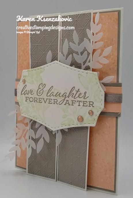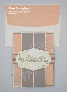 Today’s fun fold card is one that I made on Wednesday afternoon on my Facebook Live video. If you were able to join me or you watched the replay, thank you very much. If you’d like to view my video either on Facebook or YouTube, the link is below. I needed another wedding card for my boss from my family, here’s what I came up with. I’m calling it a folded gate fold with a belly band.