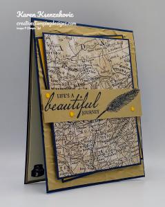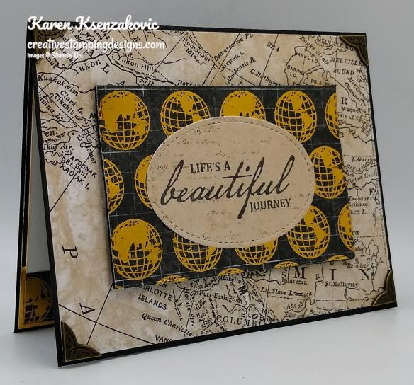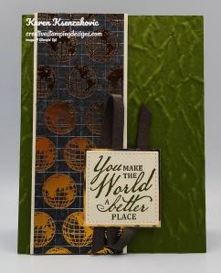 I used the Stampin’ Up! Soar Confidently Cling Stamp Set for my card today along with some World of Good Specialty Designer Series Paper and the World Map Dies.
