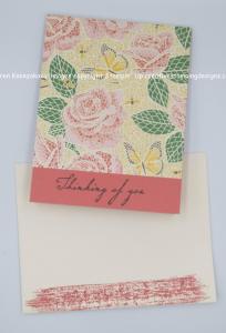 - Fine Art Floral Designer Series Paper 4 1/4″ X 5 1/2″ (card front), 1 3/4″ X 5 1/2″ (card front panel), 2 1/2″ X 6″ (piece for envelope flap)