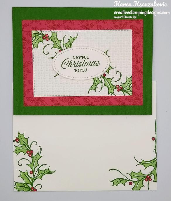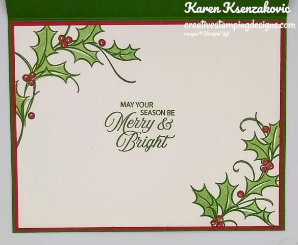I used the retiring Stampin’ Up! Christmas Means More Photopolymer Stamp Set for the inside of my card. The outside is all cut and punched pieces. I’ve seen a card similar made by Rachel Tessman, I added my own twist to it.